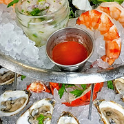 Chilled oysters, Maine Lobster Tail, octopus cocktail, scallop ceviche, tuna Tatar, jumbo shrimp, crabmeat, cognac sauce, lemon, cocktail sauce, Champagne mignonette. 2 people
